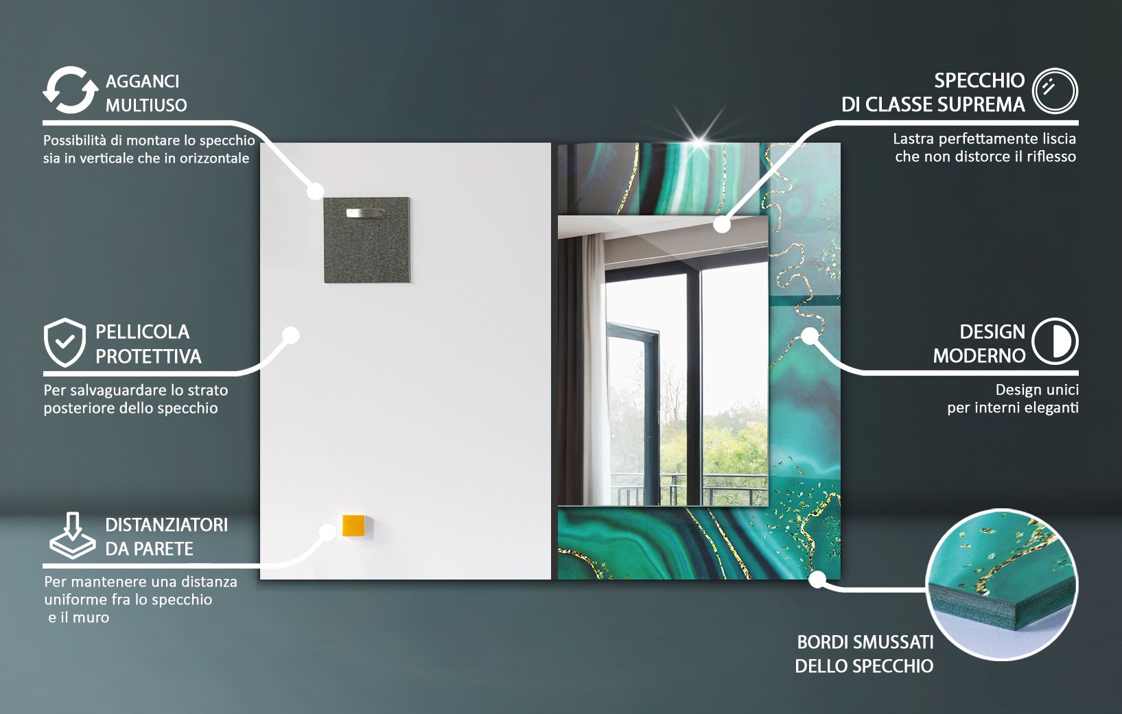 Il nostro specchio decorativo rettangolare stampato è un elemento meraviglioso che trasformerà l'immagine della tua casa. Se ci tieni ad un accessorio interessante che attiri l'attenzione, aggiunga stile e abbellisca qualsiasi stanza, questo specchio fa sicuramente al caso tuo! Indipendentemente dal posto in cui lo si colloca, aggiungerà estetica a qualsiasi spazio. Renderà la tua camera da letto o il tuo corridoio più eleganti ed espressivi. Inoltre, grazie alla stampa Metallo arrugginito che sceglierai, sottolineerà il carattere e lo stile individuale dei tuoi interni. Sia che lo vuoi utilizzare come specchio funzionale o che vuoi curare il suo valore decorativo, è sicuro di essere una fantastica aggiunta a qualsiasi stanza. Il Specchio decoro è realizzato con materiali di altissima qualità e la sua cornice è in vetro temperato altamente resistente, per cui ti servirà per molti anni. Offriamo specchi stampati rettangolari nelle dimensioni di 60x60 cm e 60x80 cm. Ciascun specchio viene fornito con un set di appendini in metallo e distanziatori in schiuma che ti aiuteranno a posizionarlo facilmente sulla parete di tua scelta.