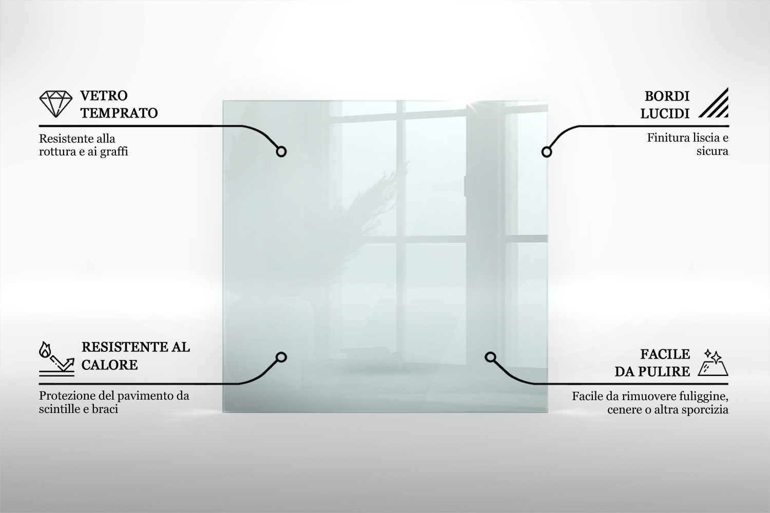 Con il Vetro sotto il camino in formato h40, puoi goderti il camino in totale tranquillità, sapendo che il tuo pavimento è ben protetto. Questo vetro sotto stufa è progettato per garantire massima protezione e durata, grazie alla sua struttura in vetro temperato resistente al calore. Il Vetro sotto il camino si distingue per la sua linea elegante, che dona ordine e raffinatezza all’ambiente. Facile da pulire e mantenere, è una soluzione perfetta per chi cerca efficienza, bellezza e comfort in un solo prodotto.